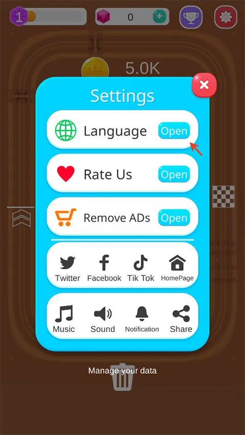 1、进入赛车大亨游戏内点击右上角的齿轮。