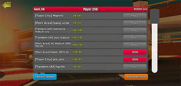 3、选择一个房间,然后点击JOIN加入;