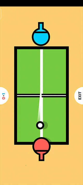 游戏中通过手指滑动控制球拍移动,并可微调旋转角度改变回球轨迹;先得7分者获胜,右上角按钮随时退出。