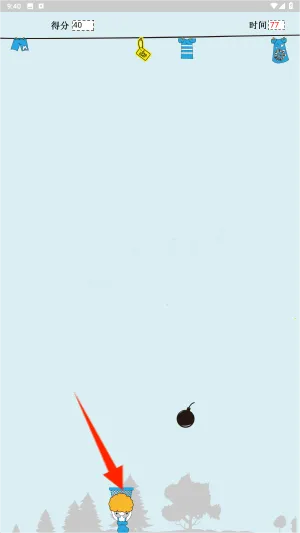 2、通过左右滑动控制角色移动,准确接住从天而降的不同道具。