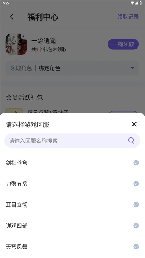 3、下方有一个会员礼包,选择你需要领取的游戏以及绑定角色