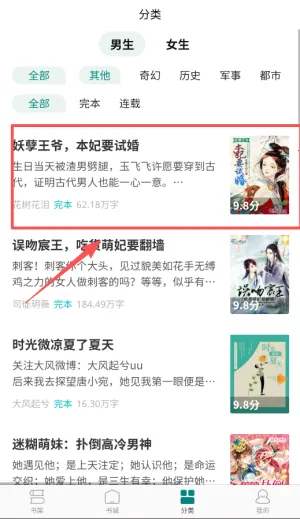 1、分类详细,页面耳目一新。针对不同类型小说进行精准区分,让您能快速找到心仪之作。