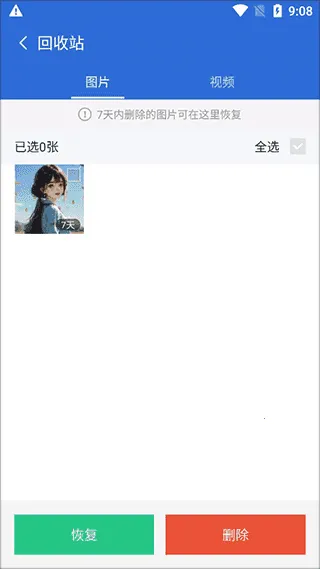 2. 回收站功能:误删图片视频不用慌,内置回收站支持安全还原近期清理的媒体文件。