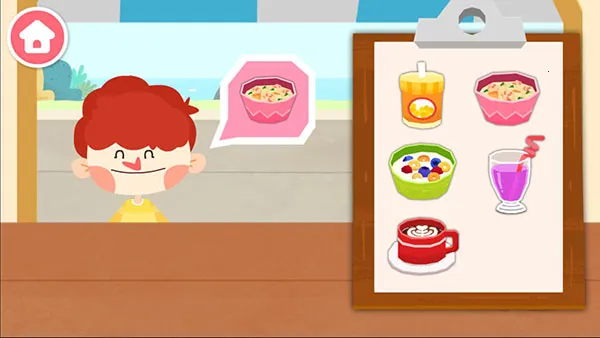 游戏中有丰富的食物制作,如花式面点,大厨做松饼蛋糕,处理食材搅拌煎熟,再用巧克力酱和草莓装饰;美味小食,炸鸡排、烤蛋挞、烤红薯;健康饮品,磨豆浆;还能发挥想象力DIY混合果汁。玩法上,进入游戏迎接小客人点餐,根据菜单找餐,点击制作,用厨具处理食材,做完盛出,全部完成送顾客,顾客付账后接待下一位。它能让宝宝爱上吃早餐,学会制作13种美食,养成不挑食好习惯,助力儿童快乐启蒙。